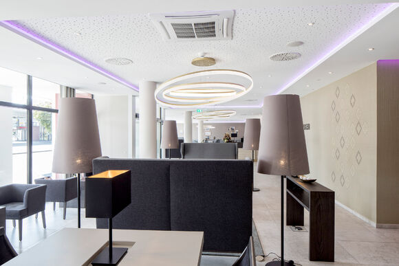 Ale to nie wszystko, jeśli chodzi o technikę klimatyzacyjną w hotelu Lingen: także nawiewniki pochodzą z tego miasta. Firma Kampmann dostarczyła nawiewniki wirowe typu DAL 358. Dzięki indywidualnie regulowanemu systemowi kierowania prowietrzem i dużym prędkościom wylotu powietrza przy niskim poziomie mocy akustycznej DAL 358 jest doskonałym rozwiązaniem do różnorodnych zadań wentylacyjnych.
