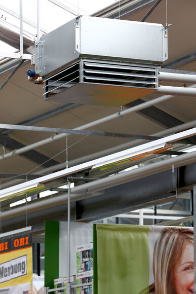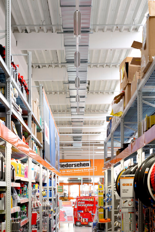Sześć urządzeń wentylacyjnych o łącznym przepływie wynoszącym 40 tys. m³/h zapewnia centralne napowietrzanie i odpowietrzanie marketu. Sprawność odzysku ciepła za pomocą wymienników dwupłytowych wynosi 84%. Centralne urządzenia wentylacyjne projektowane są w Lingen przez Kampmann GmbH, a produkowane w Donaueschingen przez Nova Apparate GmbH. Kluczowym elementem instalacji jest połączenie klasycznej wentylacji centralnej z rozproszonymi aparatami grzewczo-wentylacyjnymi. Wentylacja sterowana jest na podstawie stężenia dwutlenku węgla, przez co zużywana jest minimalna konieczna ilość prądu. Aparaty grzewczo-wentylacyjne TOP klimatyzują market w sposób rozproszony i ogrzewają daną strefę do żądanej temperatury zgodnie z zapotrzebowaniem. Zastosowanie najnowocześniejszych silników EC pozwala ponadto zminimalizować zużycie prądu na powierzchni sklepu wynoszącej łącznie 10 tys. m2.