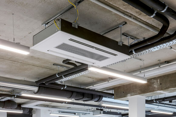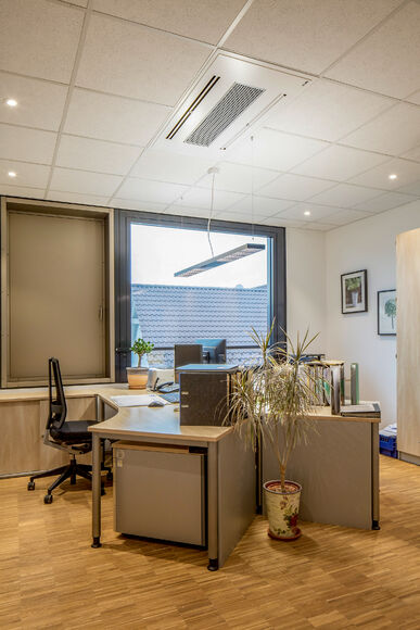 W nowej inwestycji przy Gartenstraße działają najróżniejsze firmy: gabinet psychoterapii, spółka doradztwa podatkowego, dentysta i wytwórca materiałów reklamowych. U tego ostatniego dla uzyskania industrialnego klimatu wnętrza zrezygnowano z sufitu podwieszanego i KaDeck działa tam bez zabudowy, ale mimo to w dobrym stylu. W innych pomieszczeniach urządzenia KaDeck dyskretnie wkomponowano w raster podwieszanego sufitu.